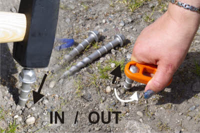 De Plaat en sloten zijn zo ontworpen dat ze geschikt zijn voor bijna elk type luifel en tentstokken. Met de twee oranje schuifregelaars kun je ze snel vastzetten of losmaken in enkele seconden. Je kunt elke schroefharing uit ons hele assortiment gebruiken om de plaat te bevestigen. Peg & Stop werkt op vrijwel elke ondergornd in combinatie met hun borgmoeren. De vlakke plaat biedt een groter steunoppervlak en zorgt ervoor dat de luifelpoten of tenstokken niet eer zinken in een zachte (zand)grond, neem enkel 2 Peggy L inschroefbare haringen.